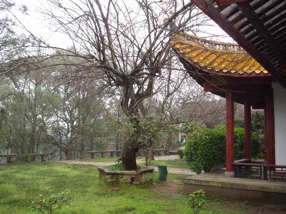 相傳四千多年前,舜帝南巡,兩個(gè)受妃娥皇、女英隨之趕來,船被大風(fēng)阻于君山,二妃突然聽到舜帝已死于蒼梧,悲痛欲絕,望著茫茫的湖水,攀竹痛哭淚水灑遍了山上的竹林,遂成斑竹,不久,二妃憂郁成疾,死于洞庭湖,葬于山之東麓,為紀(jì)念二妃而改洞庭山為君山,現(xiàn)是1979年岳陽市政府按(清)彭玉麟重修的墓樣維修的。墓為石砌,前立石柱,上雕麒麟 、雄獅、大象、中堅(jiān)、“虞帝二紀(jì)之墓”墓碑。墓前10米處有一對石引柱,上有一副楷書石刻對聯(lián):“君妃二魄芳千古,山竹諸斑淚一人”。
