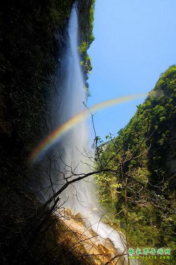 【神泉峽】有請各位朋友注意,我們行走到這里,您會發(fā)現(xiàn),峽谷在這一段猛然一下子收縮了,變得越來越窄了。這段很窄的峽谷叫做神泉峽,總長300余米。在神泉峽,我們要穿過兩處水簾瀑,請大家保護(hù)好自己的攝像機、照相機等貴重物品,以免打濕受損。同時還要注意腳下,慢慢行走,因為這一段的木板棧道很滑。