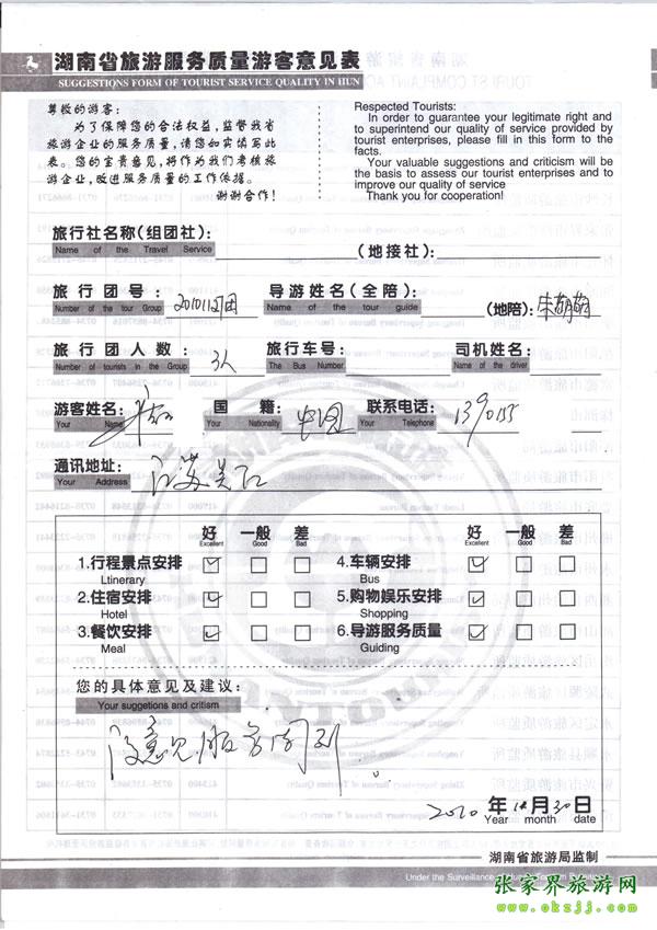- 游客夏先生為表揚(yáng)導(dǎo)游李姣姣寫來表揚(yáng)信致我張家界... [14811]