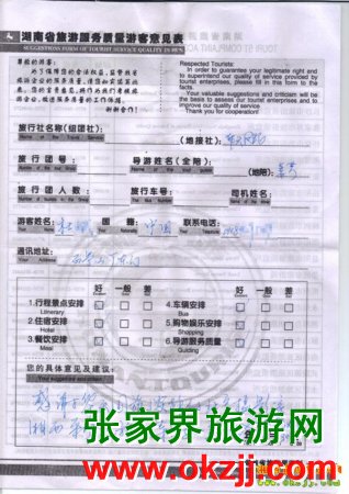 2010年3月30日北京杜先生一行11人張家界旅游質(zhì)量反饋