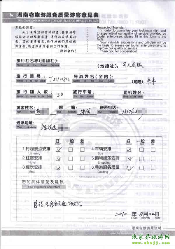- 游客夏先生為表?yè)P(yáng)導(dǎo)游李姣姣寫(xiě)來(lái)表?yè)P(yáng)信致我張家界... [14811]