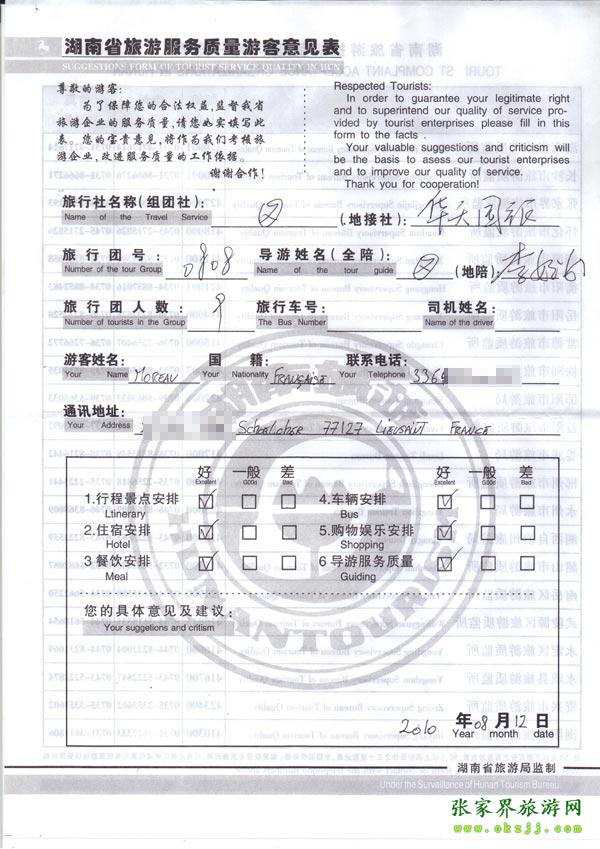 2010年8月12日法國(guó)Moreav一行9位旅游質(zhì)量反饋