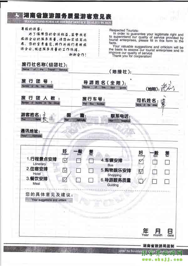 2010年10月17日袁小姐旅游質(zhì)量反饋