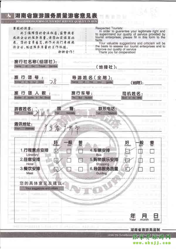 - 2011年10月26日張小姐一行18人旅游質(zhì)量反饋 [10482]
