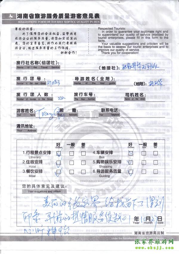- 游客夏先生為表揚(yáng)導(dǎo)游李姣姣寫來表揚(yáng)信致我張家界... [14811]