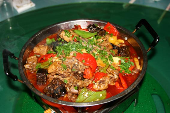 說(shuō)到吃,鳳凰的苗家土雞、苗家臘肉、酸魚(yú)和血粑鴨是一定要嘗嘗的。苗家自釀的糯米酒每頓也要喝幾杯,雖然甜甜的,但后勁很大,要小心。臨走時(shí)可以從飯館買(mǎi)上10來(lái)斤酒和一些臘肉。早晨7~9點(diǎn)時(shí),沿著東門(mén)內(nèi)的東正街往里走有個(gè)吃早飯的地方,生意火爆。店主人是一對(duì)夫婦,在門(mén)口賣(mài)米線(xiàn)、面、包子、煎餃、豬耳朵、豬頭肉、豬肘子、鹵蛋。