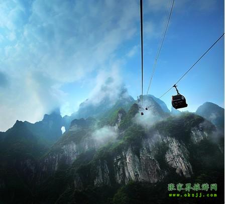 ![]() 纜車從天門山主峰云夢仙頂至天門山寺前櫻桃灣廣場,總長度800米,單程運(yùn)行約10分鐘,為無遮蓋的雙人吊椅式,是天門山山頂?shù)囊粭l絕佳空中觀景長廊。乘坐纜車緩緩飄行在林海之上,絕美的空中原始花園盡收眼底,白云裊裊,滿目碧翠,時(shí)有飛鳥在腳下掠過,時(shí)有樹梢花朵似探手可及。神仙般的瀟灑飄逸和無比的心曠神怡讓人流連忘返。
